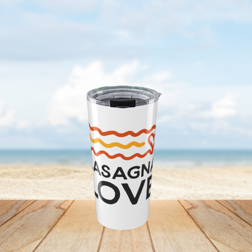 The glossy finish and vibrant wraparound Lasagna Love design make it as eye-catching as it is practical. Whether youβre sipping coffee, tea, or water between deliveries, itβs the perfect companion for every season.