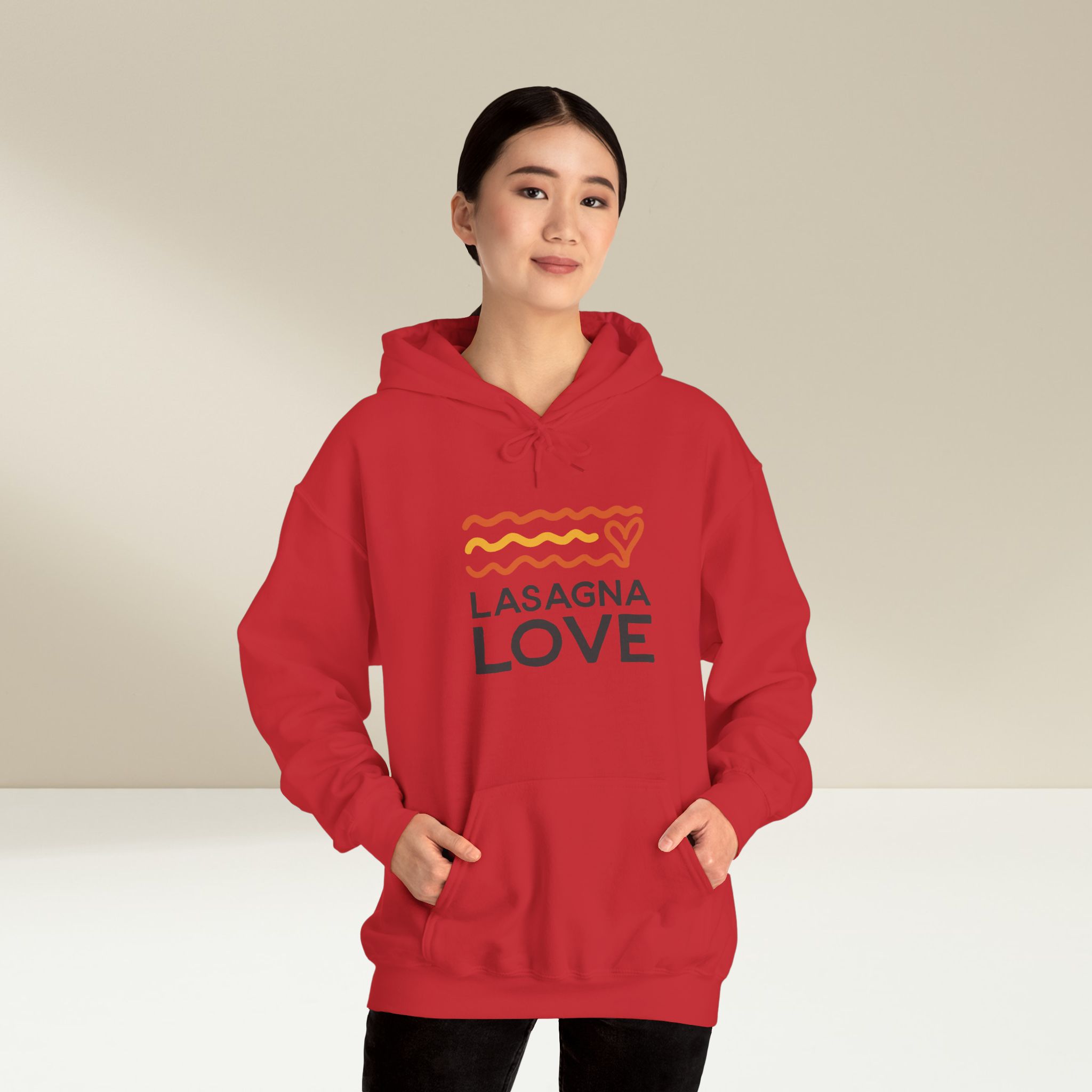 Stay cozy, comfortable, and stylish with ourΒ Lasagna Love Heavy Blend Hooded Sweatshirt. Made from a plush blend of 50% cotton and 50% polyester, this hoodie feels as soft as a homemade lasagna fresh out of the ovenβperfect for chilly days when all you want is to relax in warmth. The spacious kangaroo pocket adds practical storage for your essentials, while the color-matched drawstring and double-lined hood give it a sleek, fashionable look.