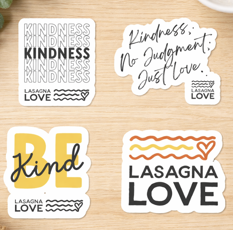 Add a little kindness ๐ to your laptop ๐ป, water bottle ๐ง, or notebook ๐ with these Lasagna Love stickers! Each one helps spread awareness of our mission to feed families ๐ฝ๏ธ and build community through homemade meals ๐ฅ. Whether you’re a volunteer ๐โโ๏ธ๐โโ๏ธ or a fan of our cause, these stickers are a simple way to show your support and spark conversations ๐ฌ๐งก.