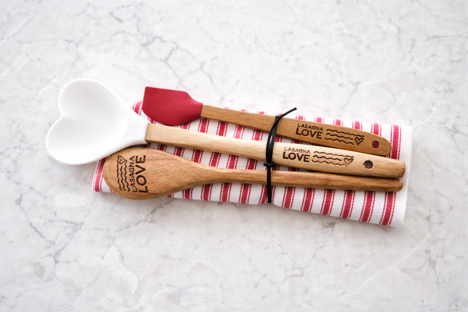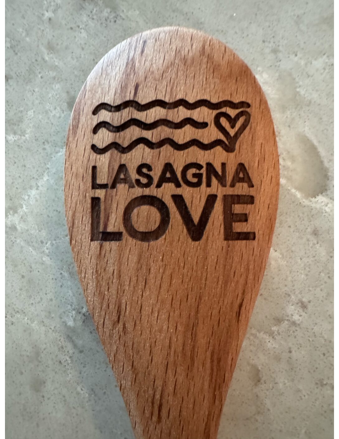 Each piece is thoughtfully selected and designed, then laser engraved with our signature Lasagna Love details, adding a personal, handcrafted touch. The wooden spoon is finished with a natural food-grade oil infused with a light lemon scent π,